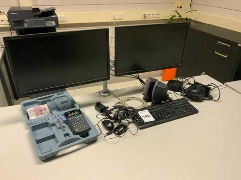 Equipado con un brazo de soporte doble ajustable en altura. Se incluyen altavoces, teclado y ratón, así como la impresora Brother P-touch 220 |