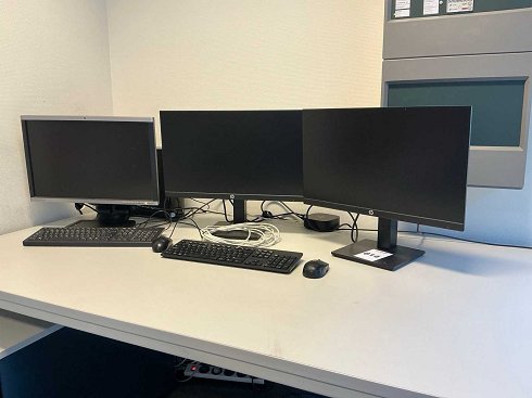 El lote consta de 2 monitores P24h, 1 LA2205wg, 1 dock USB-C, teclados y ratones. |