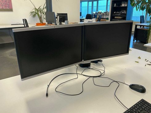 El lote consta de 6 monitores HP (varios modelos), dock USB-C, teclados y ratones.