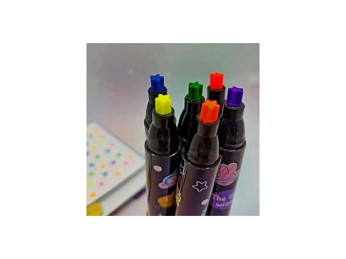 Estos marcadores de texto diseñados de forma juguetona son absolutamente imprescindibles para un público joven y dinámico, ¡ya disponibles para el mayorismo! Las tapas de estos bolígrafos especiales contienen partículas de purpurina en movimiento, y las puntas están impresas con motivos de corazón y estrellas. Estos rotuladores coloridos en 6 colores diferentes seguro que atraerán la atención en tu selección. Cantidad total: 1.440 piezas Contenido: Cada caja contiene 40 sobres, y cada paquete contiene 36 bolígrafos (juegos de 6 colores). Características especiales: puntas impresas con motivos de corazón y estrellas, partículas de purpurina en movimiento en las tapas, 6 colores brillantes diferentes.