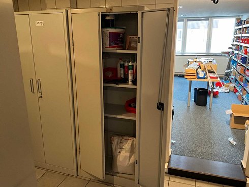 | Nombre | Armario metálico gris Schäfer Shop – interior 5 estantes, 195 × 80 × 40 cm con contenido, silicona, pegamento, pinturas |