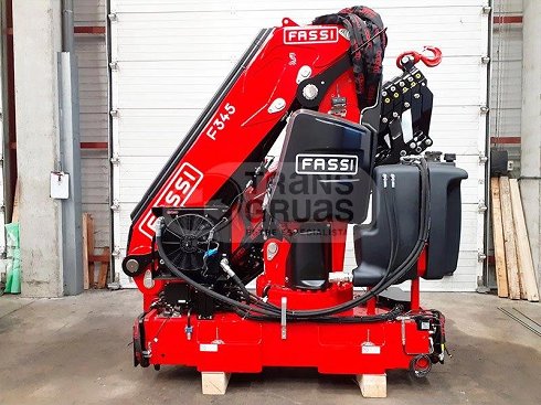 Grúa hidráulica F345RB.2.26 xe-dynamic de dos bielas, con seis extensiones hidráulicas y alcance de 16,55 m (26.55 m con jib) y carga en punta de 1.480 kg. (410 en la punta del jib) Con radiomando Scanreco de 8 funciones. La grúa incorpora además sistema PROLINK (que permite aumentar el ángulo de trabajo sobre la línea horizontal en 10-15º), distribuidor D900 y dispositivo compensador de caudal (FS), dispositivo XP (reserva de potencia), dispositivo ADC (control de la dinámica) y válvula regeneradora de aceite. Incluye juego de estabilizadores super extra extensibles hidráulicos a 6.650 mm. Cuenta con el brazo secundario y las prolongas decagonales. Fabricada en 2022, grúa nueva.