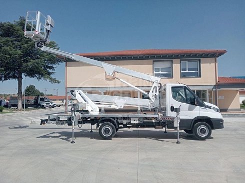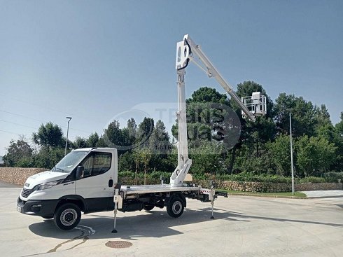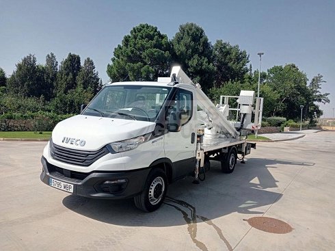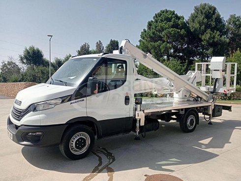 DetallesTipo de producto: Nuevo Dimensiones: 7520X2600mm Dimensiones cesta: 1400x700x1100 mm Altura de trabajo: 19,90 m Alcance horizontal: 9,60 m Tipo de cesta: Aluminio Disponible a la venta esta plataforma aérea de 20 m, Multitel HX200EX montada sobre camión IVECO 35S14 E6E. La plataforma está fabricada completamente de aluminio, excepto la torreta, o sea que es una plataforma super ligera. Conjunto entero montado y legalizado. La plataforma tiene una altura de trabajo de 19,9, alcance lateral de 9,60 m, cesta de aluminio para dos personas (carga 225 Kg), con toma eléctrica a 230 v. para conexión de herramientas de mano, giro independiente de la cesta de 65º izq/dcha, y arranque y parada del motor del vehículo también desde la cesta. Plataforma semi-nueva.