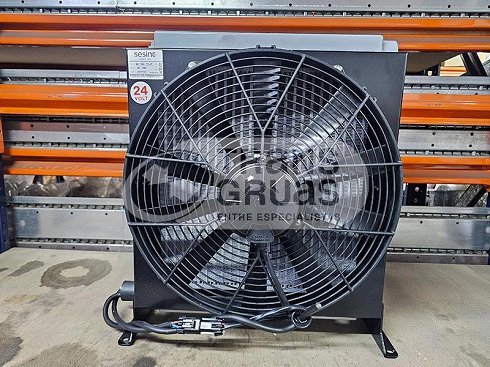 Un radiador de aceite es una pieza indispensable para el buen rendimiento de una grúa, especialmente en un país como el nuestro donde la temperatura exterior es alta, sobre todo en verano. La función de un radiador es enfria el aceite hidráulico que circula por el circuito hidráulico de la grúa. En grúas de tamaño mediano y grande, el montaje de un radiador evita que las tuberías rebienten por sobre presión del circuito por la alta temperatura del aceite, que ya de por sí se calienta por el trabajo de carga y sumado a la temeratura exterior provoca averías incómodas y peligrosas. En grúas grandes con doble depósito de aceite recomendamos el montaje de dos radiadores.