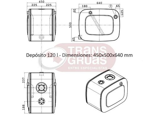 A la venta depósitos de aceite para grúas sobre camión de todas las marcas. Este modelo es un depósito de 120 l de aceite. Dimensiones: 450x500x640 mm. Incluye kit de soporte y filtro de retorno.