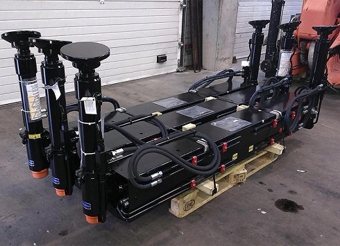A la venta gato estabilizador trasero para grúa hidráulica. Se trata de un estabilizador extensible hidráulico a 5.000 mm. que se puede acoplar en combinación con varios modelos y marcas de grúas articuladas entre 30 y 45 tn. Nuestro departamento comercial / técnico le asesorará sobre las opciones de montaje posibles.