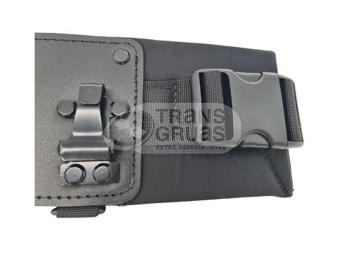 Cinturón ajustable para emisores Scanreco. Ofrece un transporte cómodo y seguro del radiomando durante las operaciones. Compatible con modelos Mini y Maxi.