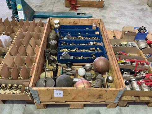 Flotadores; válvulas de retención; y varios accesorios de cobre en 1 palet