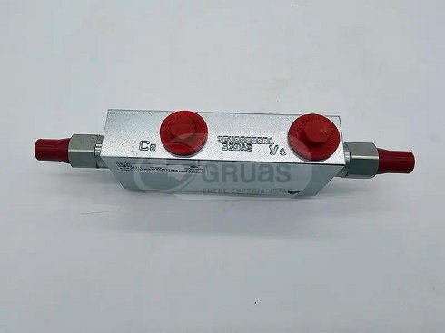 Válvula para grúas Fassi. La función de la válvula es regular y proteger el circuito hidráulico limitando la presión de paso del aceite, evitando sobrecargas y asegurando un flujo de aceite constante. Existen muchos tipos de válvulas para diferentes parte de la grúa.