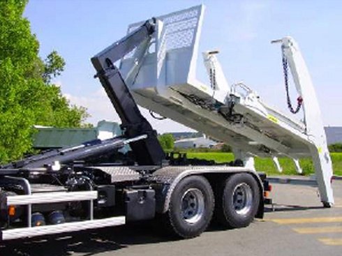 Equipo de cadenas nuevo de 14 ton. de la marca FASSI/Marrel, para camión de dos/tres ejes, con brazos telescópicos independientes, protección frontal de cabina de serie, dos estab. Traseros hidráulicos con control independiente, 2 ganchos traseros neumáticos, y topes ajustables para centrados del contenedor. Incluye mandos neumáticos en cabina y depósito de aceite y equipo de bomba hidráulica.