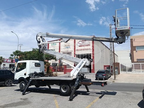 DetallsTipo de producto: Usado Dimensiones: 4790X2500X2550 MM Dimensiones cesta: 1,40 x 0,70 x 1,10 m Altura de trabajo: 19.65 M Alcance horizontal: 9.45 M Tipo de cesta: Aluminio Disponible esta plataforma aérea de 19.65 m, Multitel HX 195 montada sobre camión NISSAN NT 400. Conjunto entero montado y legalizado. La plataforma tiene una altura de trabajo de 19,65m, alcance lateral de 9.45 m. cesta de aluminio para dos personas (carga 200 Kg). Giro independiente de la cesta de 65º izq/dcha. Plataforma a la venta a buen precio por unidad en stock.