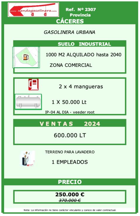 Gasolinera Urbana en suelo industrial de 1000 m2 alquilado hasta 2040 en zona comercial.
