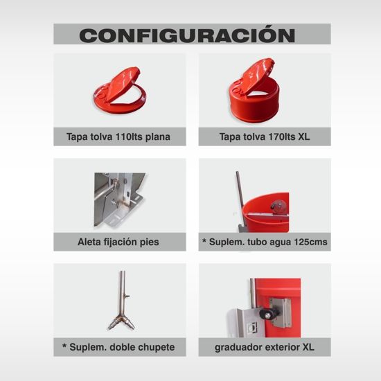 | Details | últimas unidades en existencia de la tolva de engorde ERRA modelo E-430, producto descatalogado, promoción hasta finalizar las existencias. IVA i Transporte no incluidos. Producto personalizable (a parte) - Fabricada en plástico rojo resistente. - Diseño cónico para facilitar el flujo del alimento. - Estructura metálica de soporte. - Con graduador exterior. |