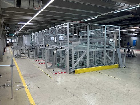 Consta de 8 estaciones de clasificación para apilar y volver a apilar mediante robots de manipulación, pinza controlada por boquilla de vacío en dirección de trabajo vertical y horizontal, voltaje de funcionamiento 3x400 V, voltaje de control 24 V, potencia nominal 6,03 kVA, corriente nominal 8,71 A, aire comprimido 6 bar, incluyendo tecnología de transportadores para interfaces y carcasa