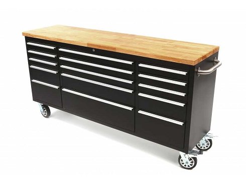 Carro de herramientas profesional / Banco de trabajo con tapa de madera Dimensiones internas de los 3 cajones superiores izquierdos 395 x 395 x 65 mm. Dimensiones internas de los 3 cajones superiores intermedios 815 x 395 x 65 mm. Dimensiones internas de los 3 cajones superiores derechos: 395 x 395 x 65 mm. Dimensiones interiores del 4º cajón izquierdo 395 x 395 x 140 mm. Dimensiones interiores del 4º cajón central 815 x 395 x 140 mm. Dimensiones interiores del 4º cajón derecho 395 x 395 x 140 mm. Dimensiones internas de la 5ª izquierda la 395 x 395 x 220 mm. Dimensiones internas del 5º cajón central 815 x 395 x 220 mm. Dimensiones internas de la 5ª derecha la 395 x 395 x 220 mm. Dimensiones de las ruedas 150 x 40 mm. Espesor de la tapa de madera maciza 40 mm. Dimensiones del embalaje 189 x 55 x 80 cm. Peso 170 kg. El HBM 182 se suministra de serie con: 2 x 150 mm. Rueda giratoria de alta resistencia con freno. 2 x 150 mm. Volante de alta resistencia. 2 x Mango robusto de acero |