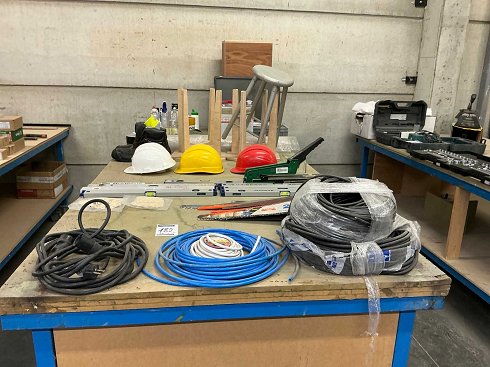 Estos incluyen: sierras manuales, niveles de maníbula, cables, cascos, y así sucesivamente.