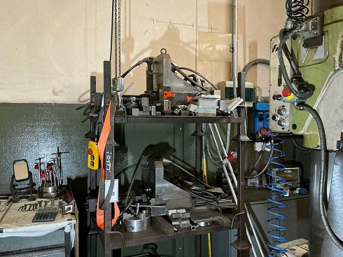 Consiste en una estantería con varias piezas de repuesto y accesorios para maquinaria en su interior |