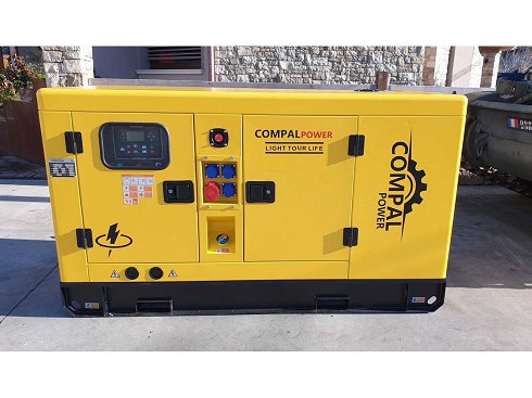 COMPAL POWER VG-R30 generador eléctrico, super silenciado, encendido electrónico automático, motor Ricardo de 4 cilindros refrigerado por agua, motor con sistema de reducción de consumo de combustible. Salidas 220/380 voltios, potencia 30 kW-41, 3kVA Nunca se usaron 0 horas. La potencia indicada se refiere a la potencia máxima. Dimensiones totales: 2000 x 1000 x 1200 mm Peso: 900 kg