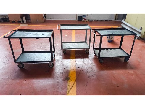 Carritos de hierro nº 3 con dos estanterías con ruedas.