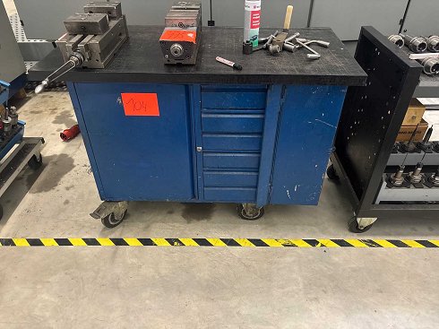 Carro de herramientas con herramienta y fresadora No se incluyen accesorios sobre la mesa.