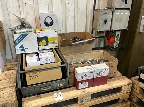 incluyendo auriculares de soporte; máscaras bucales; protectores auditivos; Guantes de trabajo HyFlex en blanco y negro; incluyendo acero galvanizado stapzlbak; sin palés; |