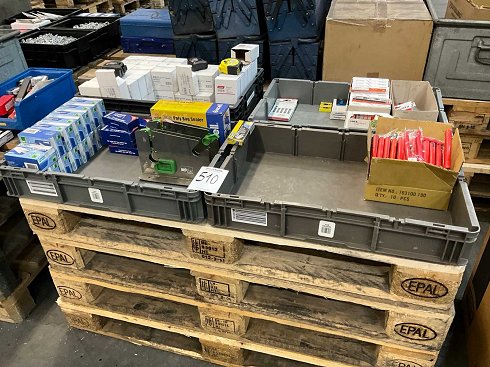 incluyendo aproximadamente varias cintas métricas; 20 grampas de cajas; 3x dispositivo de sellado de cinta; varias cuchillas cortadoras; cortador multiusos 14x; incluyendo 4x cajas de plástico; sin palés; |