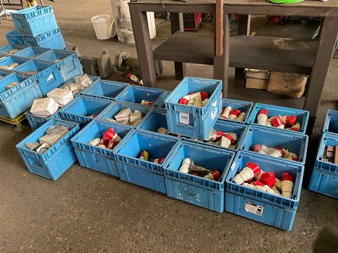 Contenido de 18 cajas que consisten en enchufes de alimentación y piezas. |
