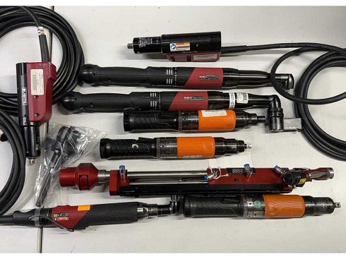 Conjunto de destornilladores/herramientas de ensamblaje eléctricos DESOUTTER y CLECO Descripción: Múltiples destornilladores eléctricos de torque, sensores, cables de conexión |