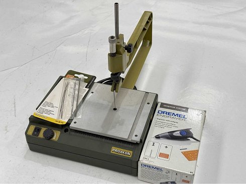 sierra de scroll, tipo: DS230/E, potencia: 85W, carrera: 150 a 2500/min, para más detalles véase la foto de la placa con el nombre; Dispositivo de grabado, marca: Dermel, ver fotos para más detalles |
