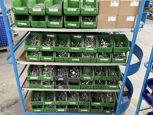 Tornillos de diferentes diseños y tamaños, materiales: galvanizado y acero inoxidable; para más detalles, véanse las placas con el nombre, ATENCIÓN: Cajas y tornillos plásticos de entrega solo para entrega, el carro de estantería no está incluido en el ámbito de entrega