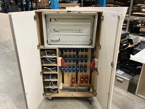 Con drivers LED Producción 24 x 220V azul 3 x 16A CEE 2 circuitos cada uno con RCD Todos los círculos asegurados individualmente No auditado |