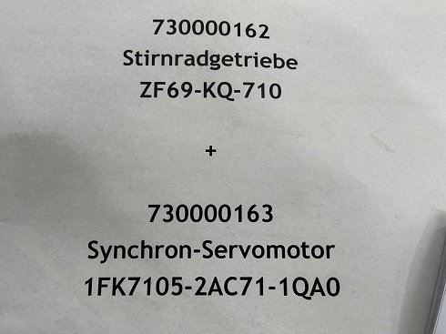 Engranaje destro, número de pieza: ZF69-KQ-710 y servomotor síncrono, número de pieza: 1FK7105-2AC71-1QA0; sin usar |