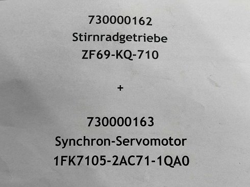 Engranaje destro, número de pieza: ZF69-KQ-710 y servomotor síncrono, número de pieza: 1FK7105-2AC71-1QA0; sin usar
