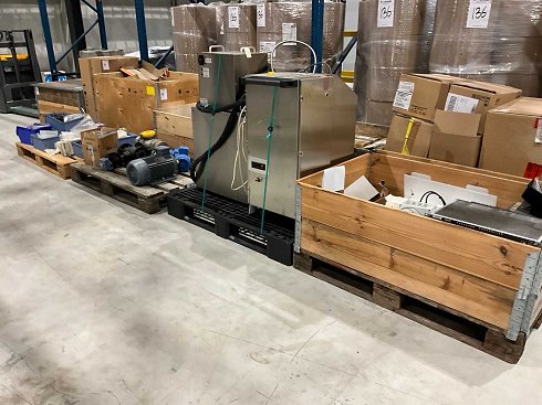 En 4 paletes, incluyendo motor eléctrico, válvulas, componentes eléctricos, máquinas, etc |