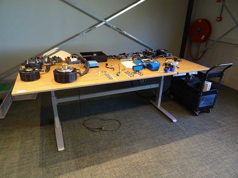 montaje montado sobre un escritorio ajustable eléctricamente, con carrito de trabajo HBM