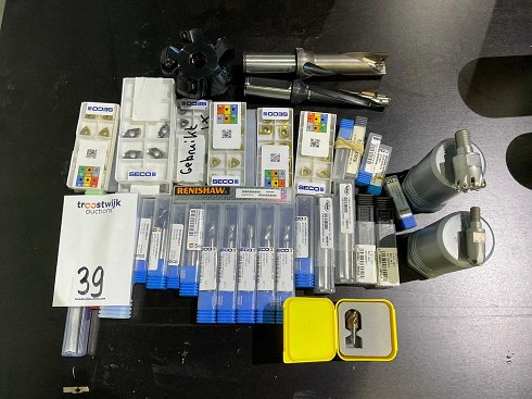 Lote de herramientas de corte, cortadores, insertos y componentes de medición, de varias marcas incluyendo Seco y Renishaw. |