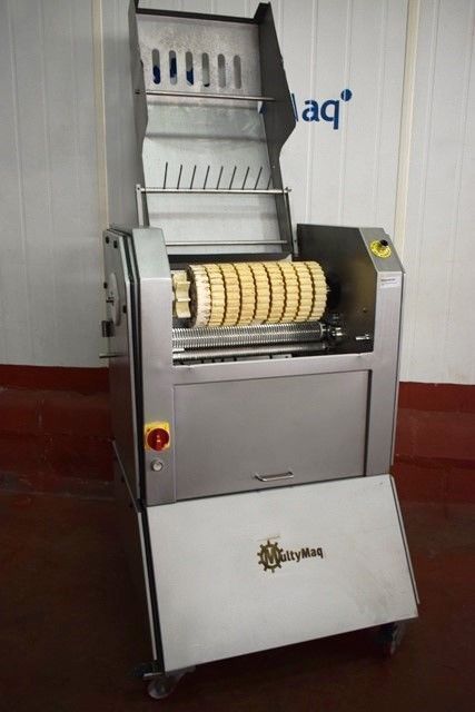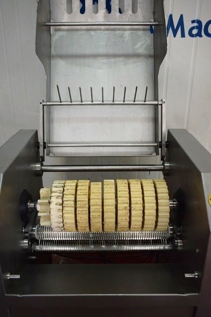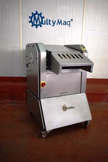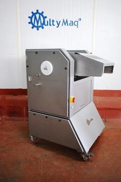 Características: Construida en acero inoxidable Con regulador de altura de rodillos Con regulador de grosor de corte Con ruedas para fácil desplazamiento Desmontable para total limpieza Cinta de salida regulable en altura Corte ajustable de 3 a 6 mm Para gran variedad de productos: Cerdo, pollo, jamón, aloe vera, etc… Transmisión por cadena Ajuste superior de gomas de arrastre mediante ajuste interno Ajuste rigidez porta cuchillas mediante ajuste interno |