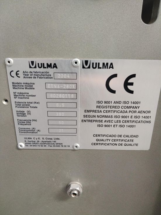 | Details | MAQUINA ENVASADORA VERTICAL ULMA, MODELO ETNA 280