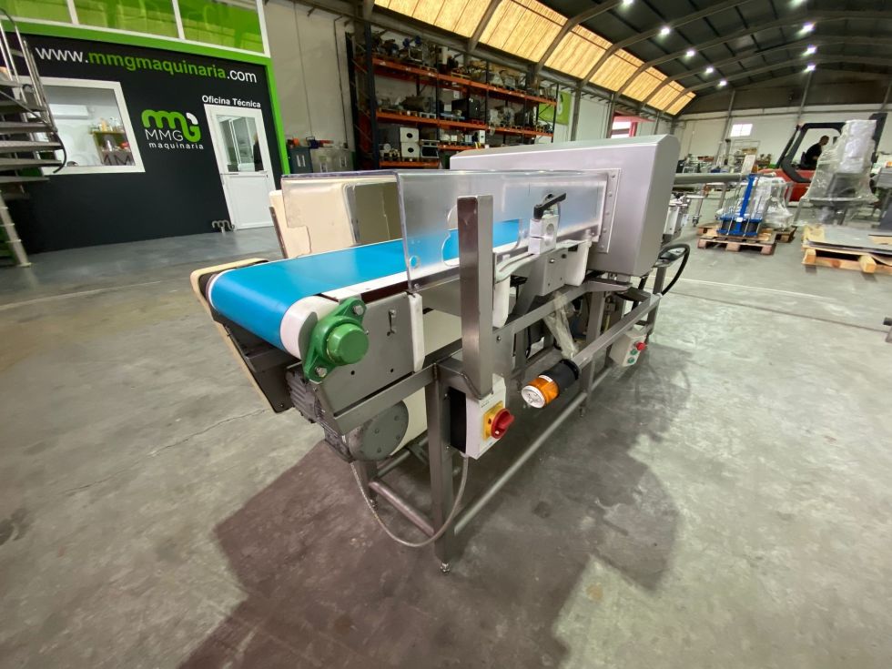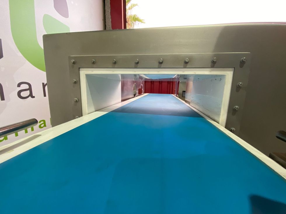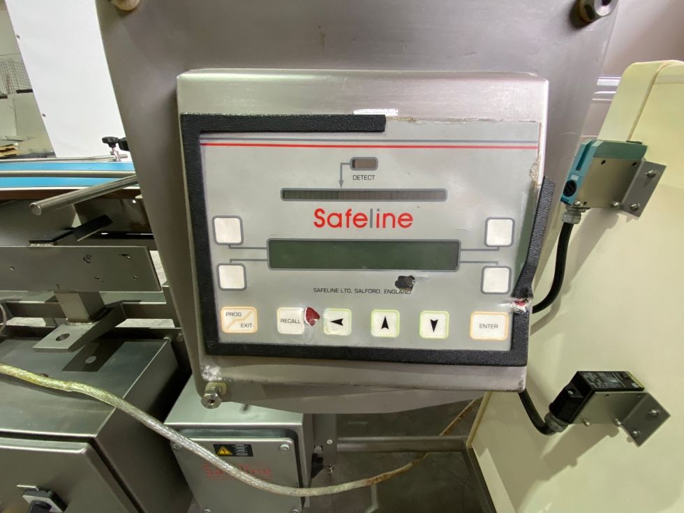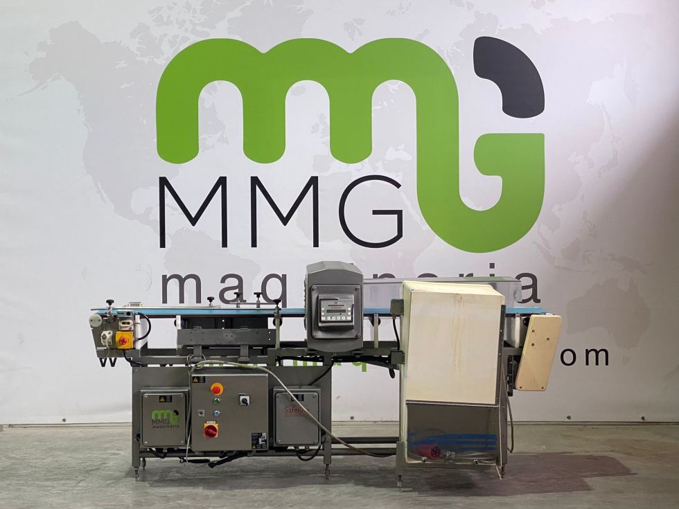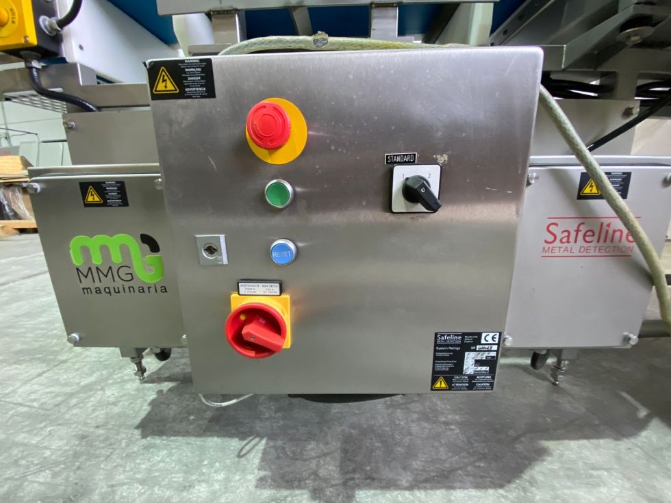 Detector de metales Safeline con cajón de rechazo y pantalla de control.