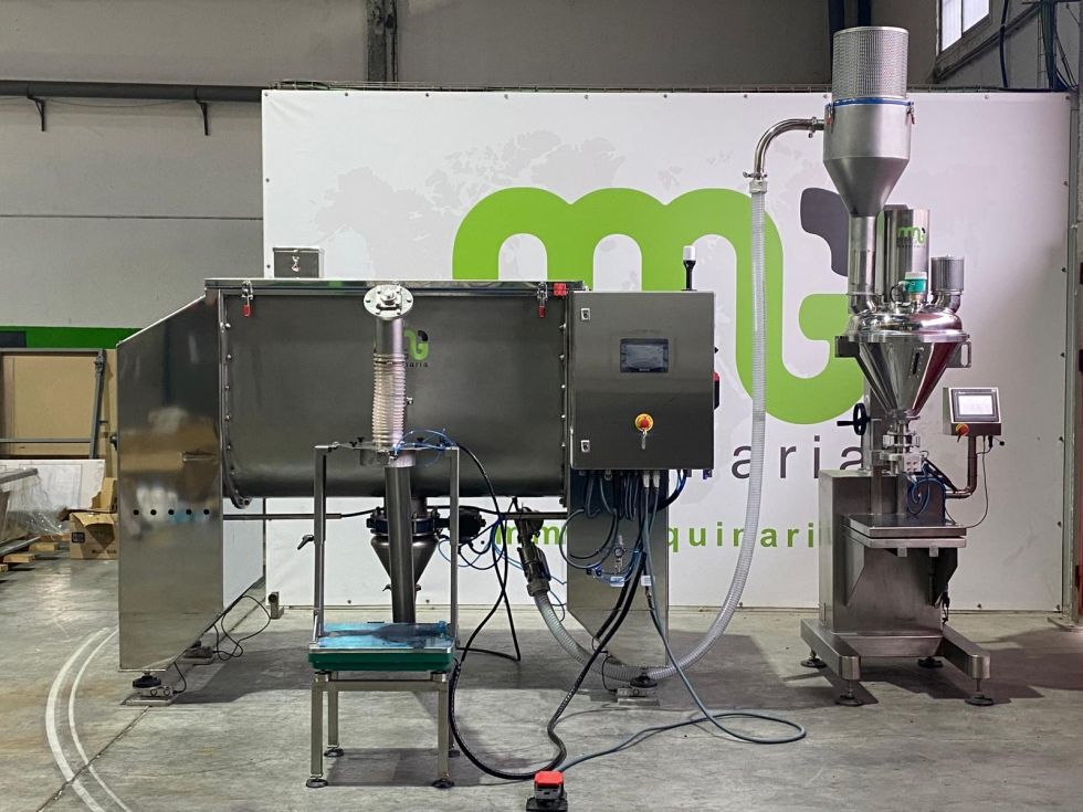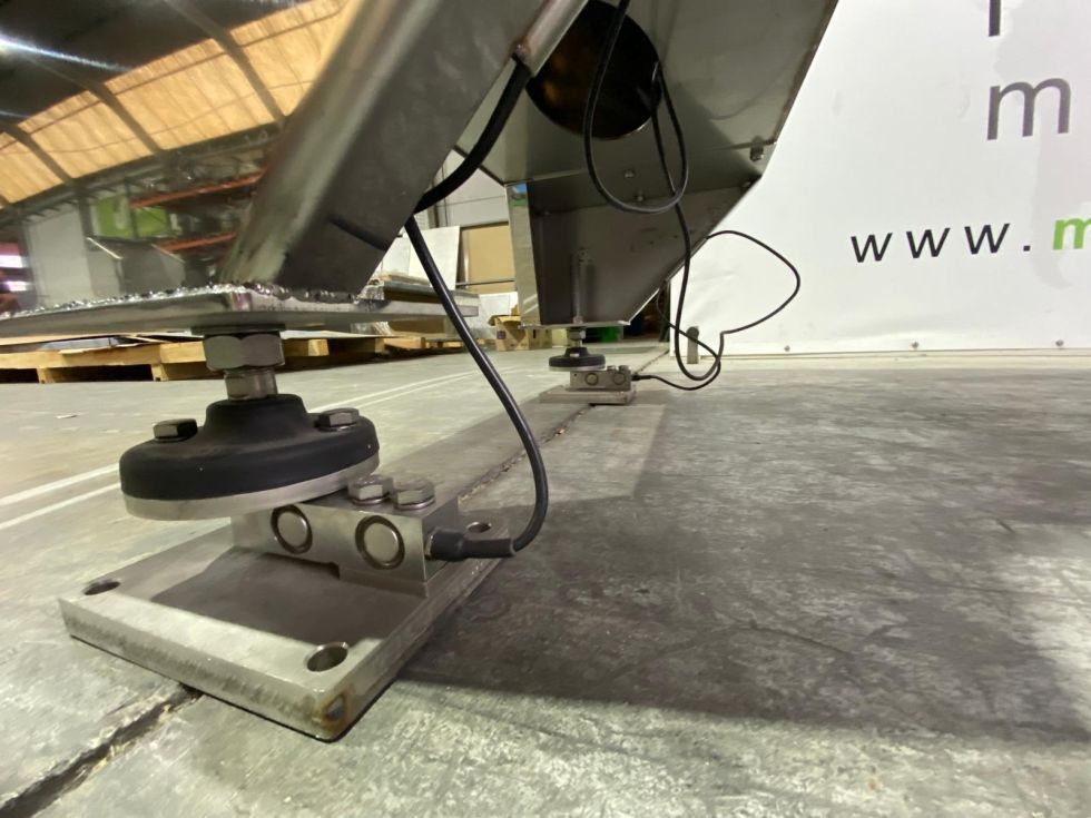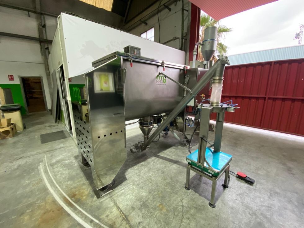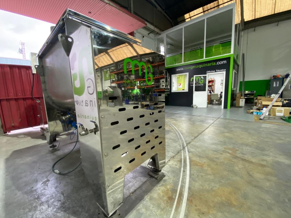 | Details | Mezcladora de bandas horizontal con capacidad de 1.000 litros construida íntegramente en acero inoxidable 316. Dispone de todos los sistemas de seguridad, cuadro eléctrico en acero inoxidable, dos puertas abatibles, salida de producto central con accionamiento de mariposa neumático, células de carga . Disponibles capacidades desde 200 litros a 5.000 litros. Potencia motor: 7’5 kW.