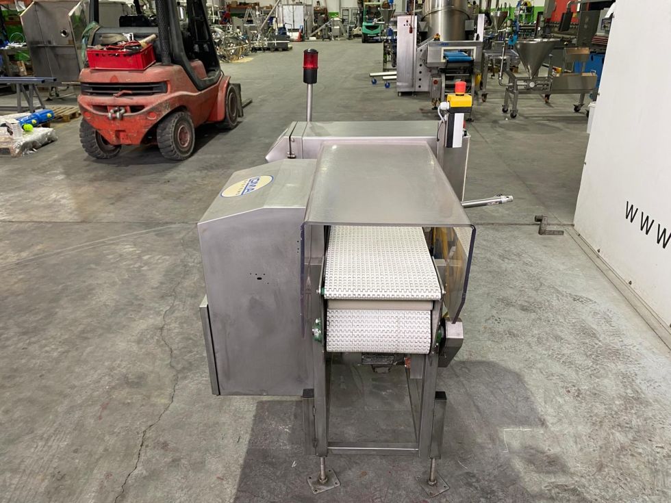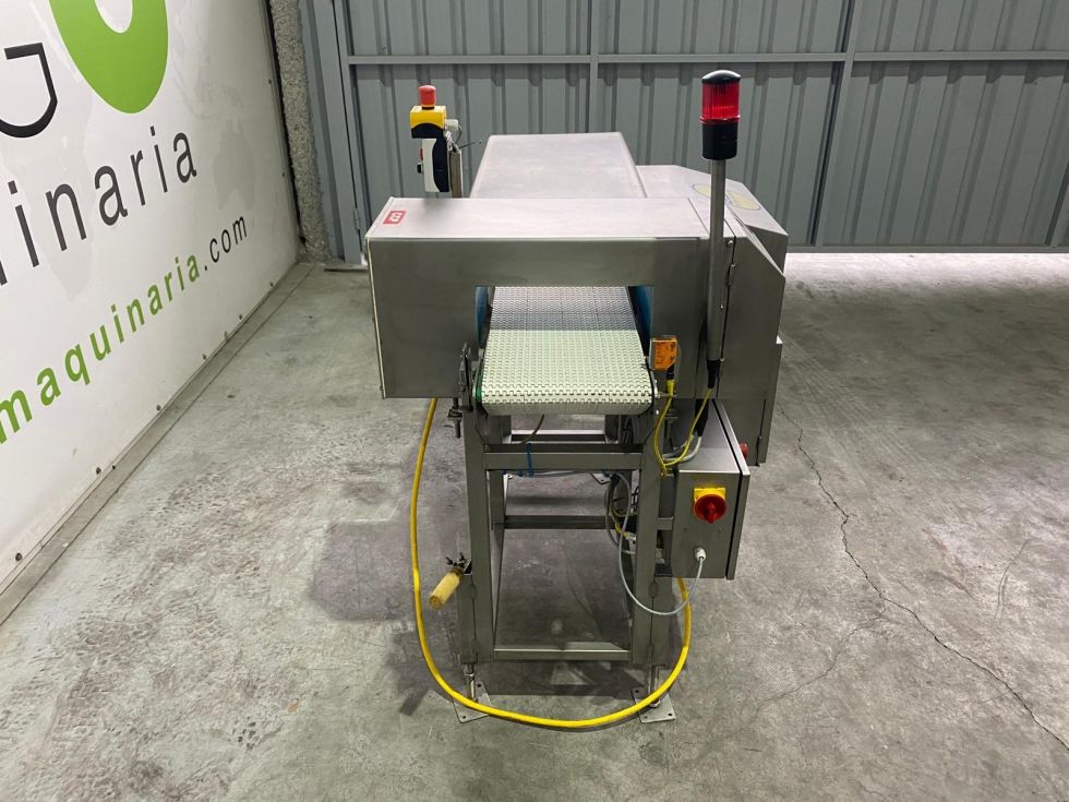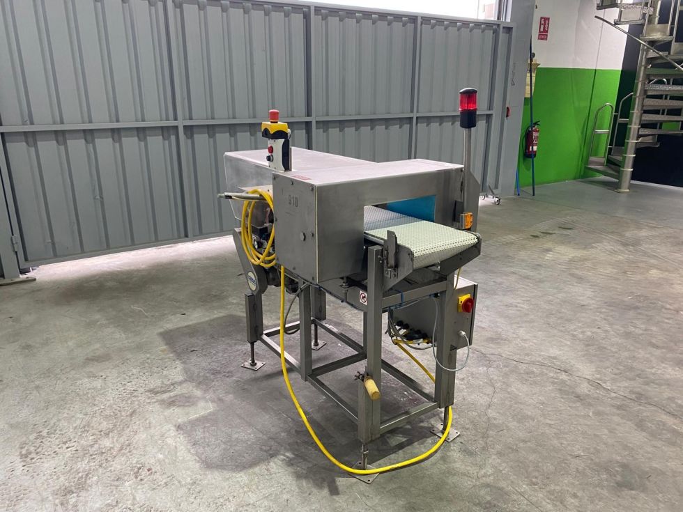 Detector de metales Loma Systems con cajón de rechazo y cristal de protección.