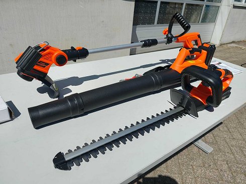 Recortador de setos para batería Kibani – Incluye batería de iones de litio de 2000mAh – 51 cm de longitud de cuchilla - 18V Cortadora de césped Kibani con batería - Incluye batería de 2000mAh de iones de litio - cargador y cable extra - 18V Kibani Leaf Blower con batería - Incluye batería de 2000mAh de iones de litio - con cargador - 18V