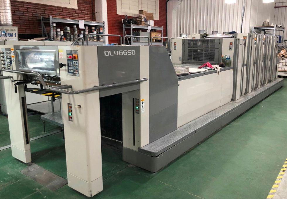 torre de barniz (Harris & Bruno) SCCII Pupitre para telemando del tintaje y registro (cocking) Olivermatic grupo mojador con Technotrans circulación y refrigeración S-APC cambio semi-automático de las planchas SAS sistema de programación de formato y espesores de hoja SIS sistema interactivo de control de cilindros cilindros batidores de tintas Oscilantes dispositivo de lavado automático de rodillo dispositivo de lavado automático de gaucho alimetnación con cintas de succión perforadas detector UltaSónico de doble pliegos sensores de registros laterales y frontales pulverizador Grafix IR-secador salida de pila alta y prolongada Non-Stop accesorios standard tamaño 660 x 508 mm hasta 16'000 pliegos / hora |