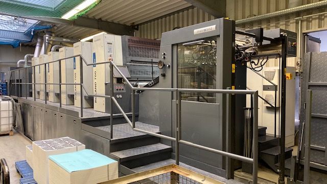 | Detalles | torre de barniz ColorPilot D+F PressPilot RCI dispositivo de control de entintado a distancia y teleajuste para los registros circunferencial, lateral y diagonal Rolandmatic grupo mojador con circulación y refrigeración Atemperador de las Baterías APL cambio de planchas automatizado para introducción y extracción de las planchas ajuste automático de los formatos dispositivo de lavado automático de los rodillos entintadores dispositivo de lavado automático de la mantilla y cilindro impresor InLine Sorter Performance Package Quick Change Air Quick Change Info Quick Change Infeed Quick Change Color Quick Change Coating Smart Quick Change Clamps mesa de cintas aspiradoras cuerpos impresores individuales con cilindros impresores de doble diámetro superficie de los cilindros portaplanchas, de caucho e impresores de superficie ennoblecida aplanador de pliegos succión de polvo pulverizador Weko Cantronic IR-secador salida de pila alta y prolongada doble con AirGlide accesorios standard elevada |