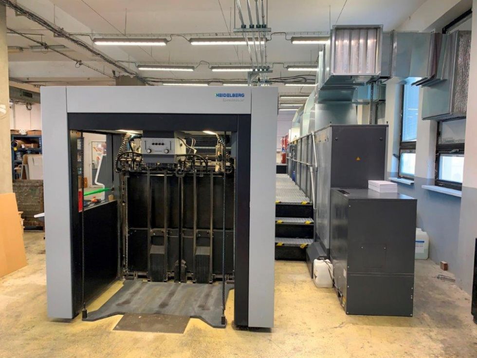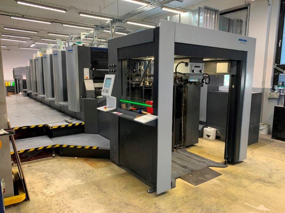 | Detalles | torre de barniz (racleta de cámera) Prinect Inpress Control WallScreen XL Prinect Consola de Control con telemando para zonas de entintado, velocidad de los rodillos del tintero, los registros circunferencial, lateral y diagonall con Job Memory Card y pantalla táctil ALCOLOR grupo mojador con circulación y refrigeración Atemperador de las Baterías AUTOPLATE PRO sistema automático de cambio de planchas PRESET PLUS ajuste automático al formato del pliego dispositivo de lavado automático de los rodillos entintadores dispositivo de lavado automático de la mantilla y cilindro impresor dispositivo para papel fino StaticStar Compact FilterStar Compact CleanStar succión de polvo pulverizador Weko AP 500 CAN IR-secador DryStar CANopen salida de pila alta y prolongada con AirTransfer System accesorios standard |