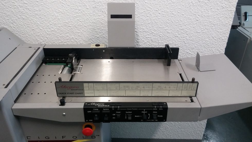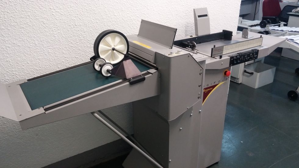 | Detalles | La Morgana DigiFold es una máquina completamente automática, para el hendido y plegado del papel. No proboca ningún arañazo al papel, gracias a su sitema de rodillos y cuchillas de plegado. La Morgana DigiFold está diseñado tanto para el papel impreso en digital o en offset. La calidad de la DigiFold en hendidos y plegados, en una sola pasada del papel es insuperable, con una precisión a la decima de milímetro. |