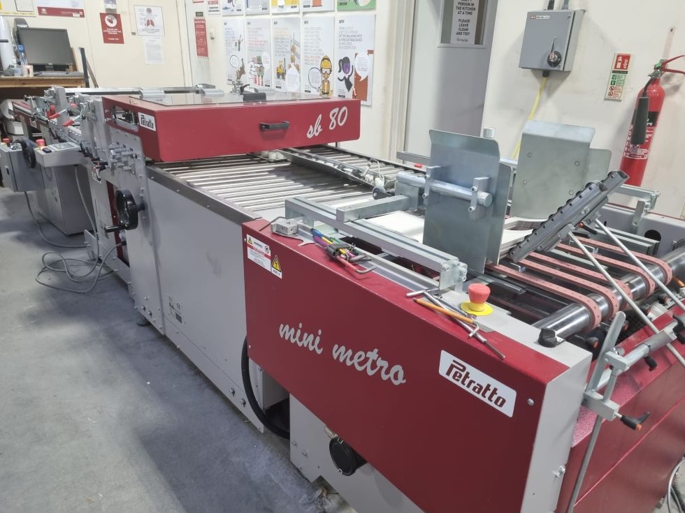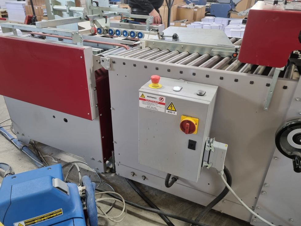| Detalles | MINI METRO 78 FOLDER GLUER YEAR 2019 TECHNICAL SPECIFICATION SD78A BELT FEEDER WITH VACUUM BELTS cm 78 (METRO LINE), continuous sheet feeder with the following features: • Movable and indipendent machine • Max. size: 78x78cm - min. size: 6x6cm • Max. speed: 200 m/min • Power consumption: kW 0.8 • Machine dimensions: 100cm length – 115cm width – 100cm height WHAT CAN THE MINI METRO FOLDING GLUING MODEL DO Straight-line boxes Bands Simple folders Envelopes Photo holders CD Wallet Double-sided adhesive tape application SE782_ MODULO 1.3 |MINI METRO 78 1.3 independent folding and gluing group (22 rollers) • Working surface, width x length: 78 x 130cm • Movable and independent machine • 3 low bridges • 2 complete sets of 4 self-aligning wheels device • 3 complete sets of 7 self-aligning wheels device • Rollers and free supports for various devices (10 extra spare sleeves) • Max size: 78x78cm / Min size: 6x6cm, Max speed: 200m/min • Power consumption: 1.5kW, compressed air consumption: 100 l/min • Dimensions: 130L x 110W x 130H (cm) SETAS MINI METRO COMPLETE ELECTRIC CABINET FOR MINI METRO • Colour touch-screen to program all working functions and events • 4 24V channels (4 programmable events for each channel) • 3 photoelectric cells to set up events and check products • Encoder • Batch counter, batch separation through acceleration of the carpet • Digital connection with linked machines (feeders, deliveries, extra modules) SE04-2B Small folding right & left ploughs with 2 complete transport sets of 7 self-aligning wheels • Flap size: min 1cm / max 10cm SE04-9 Middle folding right & left ploughs with complete transport belts • Flap size: min 1.5cm / max 15cm SE05-1 Blower folds discriminator size 78 SB05-D Standard Tipper – Upper folding buckle plate for hseet/cardboard from 150-550gr – Size 52cm • Min fold height: 3cm Max fold height: 30cm SE20B: Independent tool holder equipped with wheels SC10L Shingle Delivery Unit 700 with the following features: • Movable & independent machine • Upper and understacking stream • Programmable batch counter from the panel machine connected • Max size: 70x78cm / Min size: 15x20cm • Max speed: 40 m/min (1575 ipm) • Power consumption: 0.5kW • Machine Dimensions: 160L x 90W x 80H (cm) adjustable IC-40 Nordson: Hotmelt gluing system, 2 exits (option 4) 5kg electrical consumption 2kW, Mod. Nordson SE12: Double adhesive tape applicator • Tape max width: 25mm (1”) • Tape min width: *10mm / for tear strip 4.5mm (*smaller sizes available upon request) • Max Speed: 45 m/min • Solenoid valve: 12/24V • Blade movement controlled by pneumatic cylinder • Compressed air: 2.5/3 bar • Max external diameter of the coil: 350mm (+/- 500 metres) • Internal diameter of the coil: 75mm • Min length application: 10mm • Application tolerance: +/- 1mm • Weight: 5.8kg SB80 Rollers registering attachment for creasing, perforation & cut, Max size: 800mm • Max Speed: 80 m/min • Min Size: 12x12cm • Max Size: 80x80cm • Machine Dimensions: 130L x 110W x 100H cm |