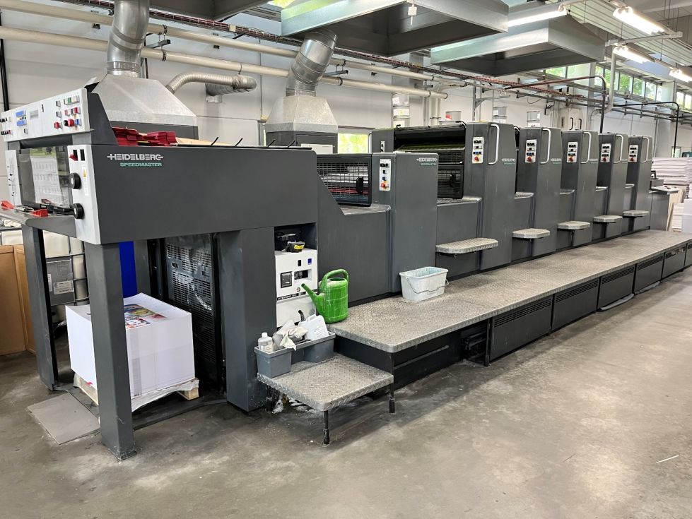| Detalles | solo 48 millones de impresiones torre de barniz CP-Tronic mando digital de la máquina CPC 1-04 Consola de Control con telemando para zonas de entintado, rodillo de tintero, los registros lateral, circunferencial y diagonal, con lápiz de luz y tarjeta de memoria ALCOLOR grupo mojador con circulación y refrigeración AUTOPLATE sistema automático de cambio de planchas dispositivo de lavado automático de los rodillos entintadores dispositivo de lavado automático de la mantilla y cilindro impresor pulverizador Grafix Alphatronic 200 IR-secador salida de pila alta accesorios standard reversible 1/4, 5/0 |