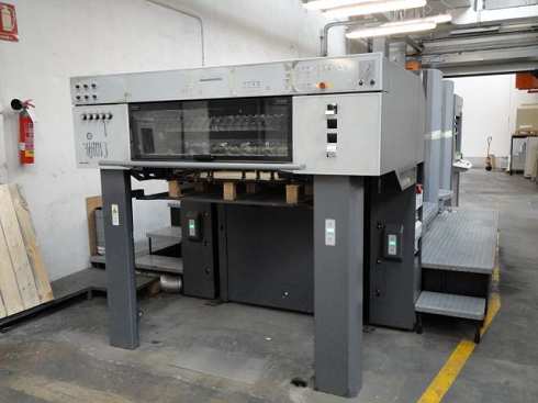 | Detalles | reversible 1/1, 2/0 CP2000 Consola de Control con telemando para zonas de entintado, velocidad de los rodillos del tintero, los registros circunferencial, lateral y diagonal, con lápiz de luz, Job Memory Card y pantalla táctil ALCOLOR grupo mojador con circulación y refrigeración AUTOPLATE sistema automático de cambio de planchas PRESET Plus ajuste automático al formato del pliego dispositivo de lavado automático de los rodillos entintadores dispositivo de lavado automático de la mantilla pulverizador salida de pila alta accesorios standard |
