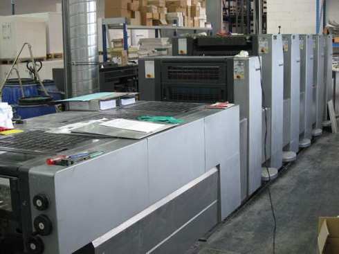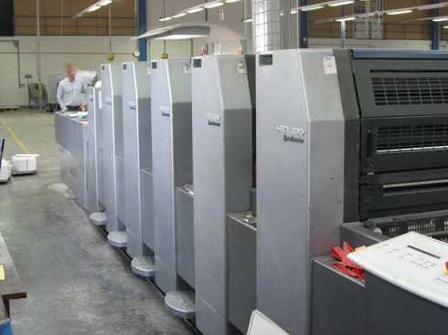 | Detalles | torre de barniz CP2000 Consola de Control con telemando para zonas de entintado, velocidad de los rodillos del tintero, los registros circunferencial, lateral y diagonal, con lápiz de luz, Job Memory Card y pantalla táctil ALCOLOR grupo mojador con circulación y refrigeración AUTOPLATE sistema automático de cambio de planchas CombiStar atemperador de las baterías dispositivo de lavado automático de los rodillos entintadores dispositivo de lavado automático de la mantilla y cilindro impresor pulverizador Grafix Alphatronic 200 IR-secador DryStar salida de pila alta y prolongada accesorios standard max. 15'000 pliegos / hora |